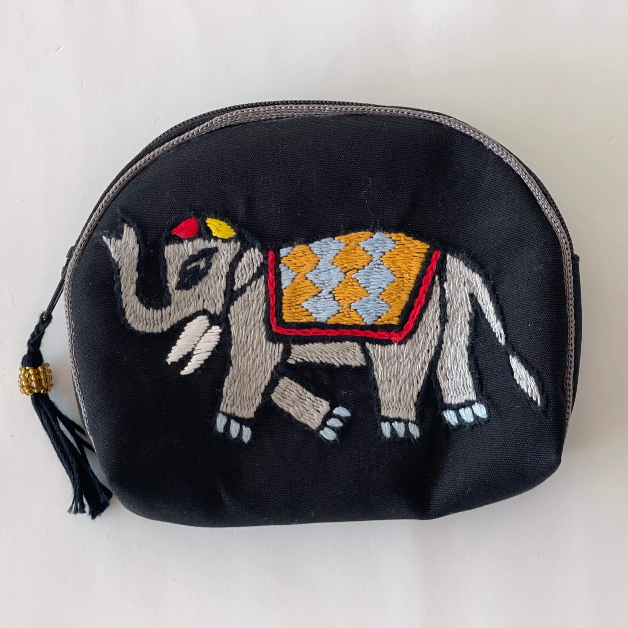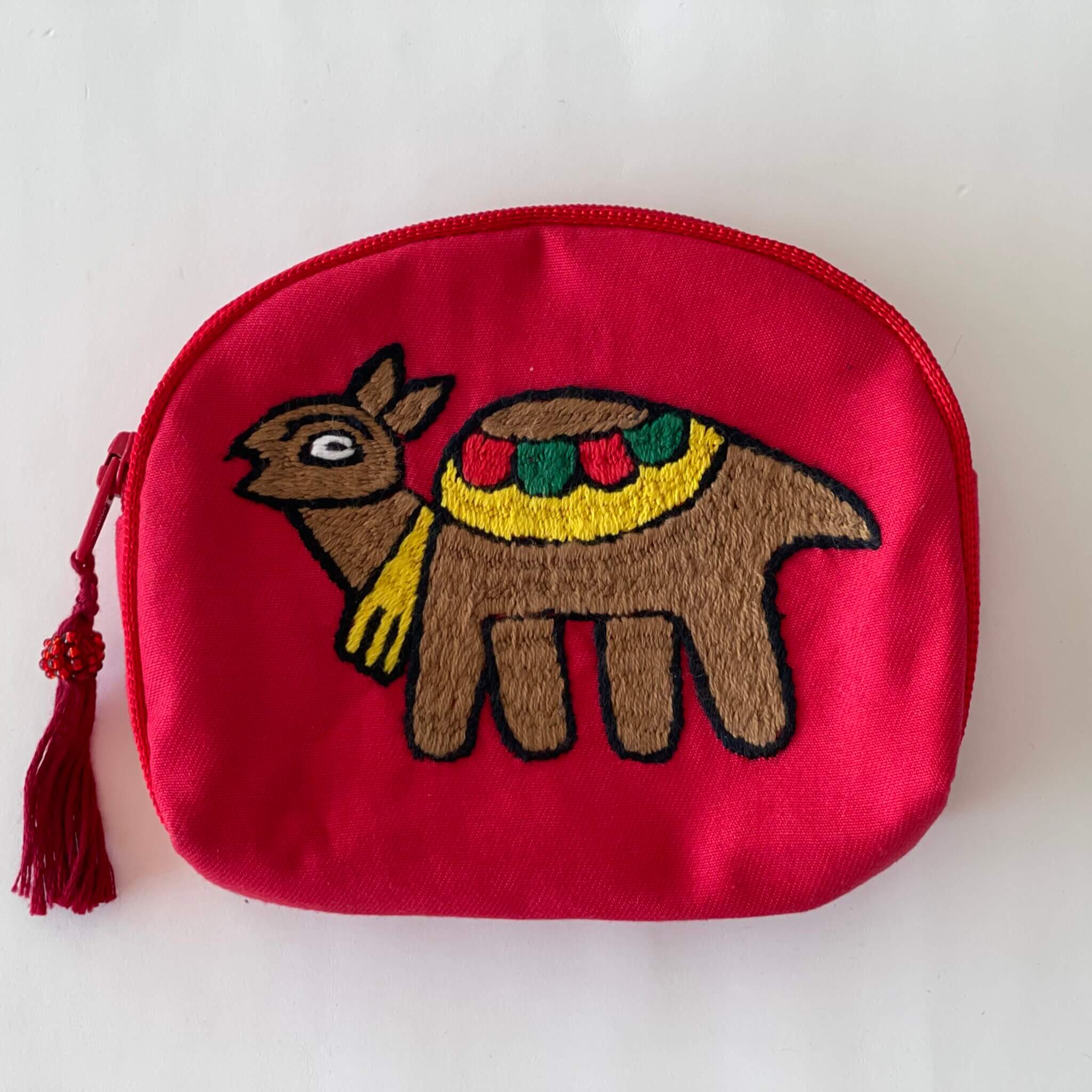 Afganistani naised on tõelised meistrid, kanna uhkusega nende poolt tikitud mündikotti! Koti esikülg on tikitud puuvillasele kangale, tagumine külg on sama tooni puuvillasest kangast. Kott on pehme vooderdusega ning kotisuu suletav lukuga. Lukuotsa kaunistab puuvilla niidist tehtud ning helmestega kaunistatud tutike.